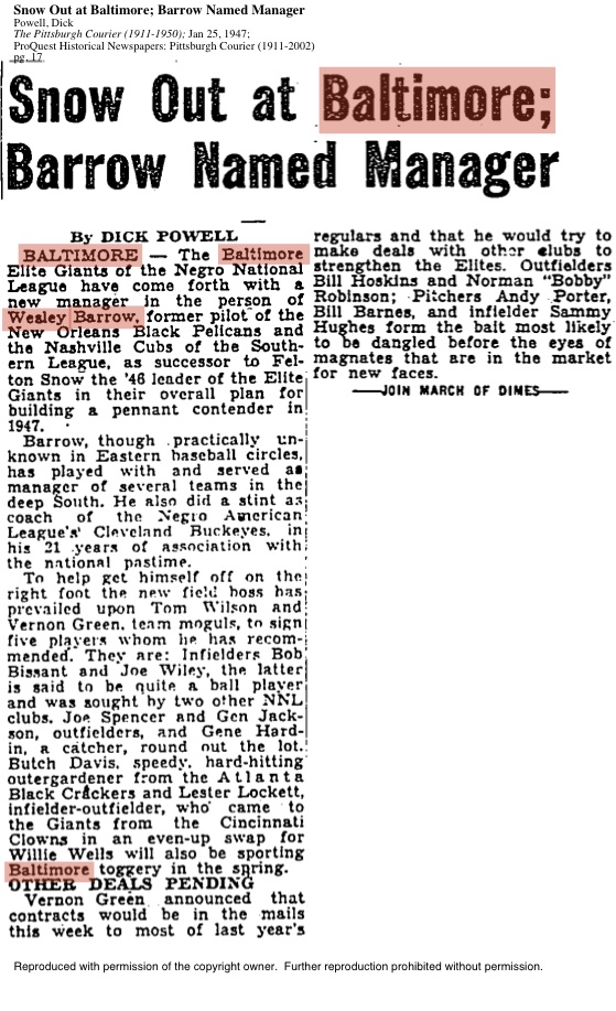 The paper also asserted that Barrow was brought on by Baltimore to improve the club’s performance somewhat significantly, stating that the Elite Giants were putting into place an “overall plan for building a pennant contender in 1947.”