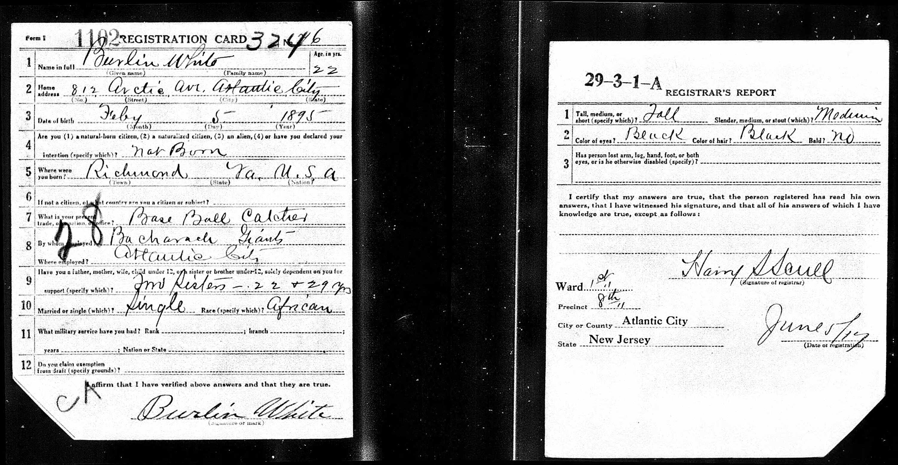 Some records, including Census sheets, his WWI draft card and Seamheads — not to mention the always trusty Wikipedia (some sarcasm there) — assert that White was birthed in Richmond, Va.