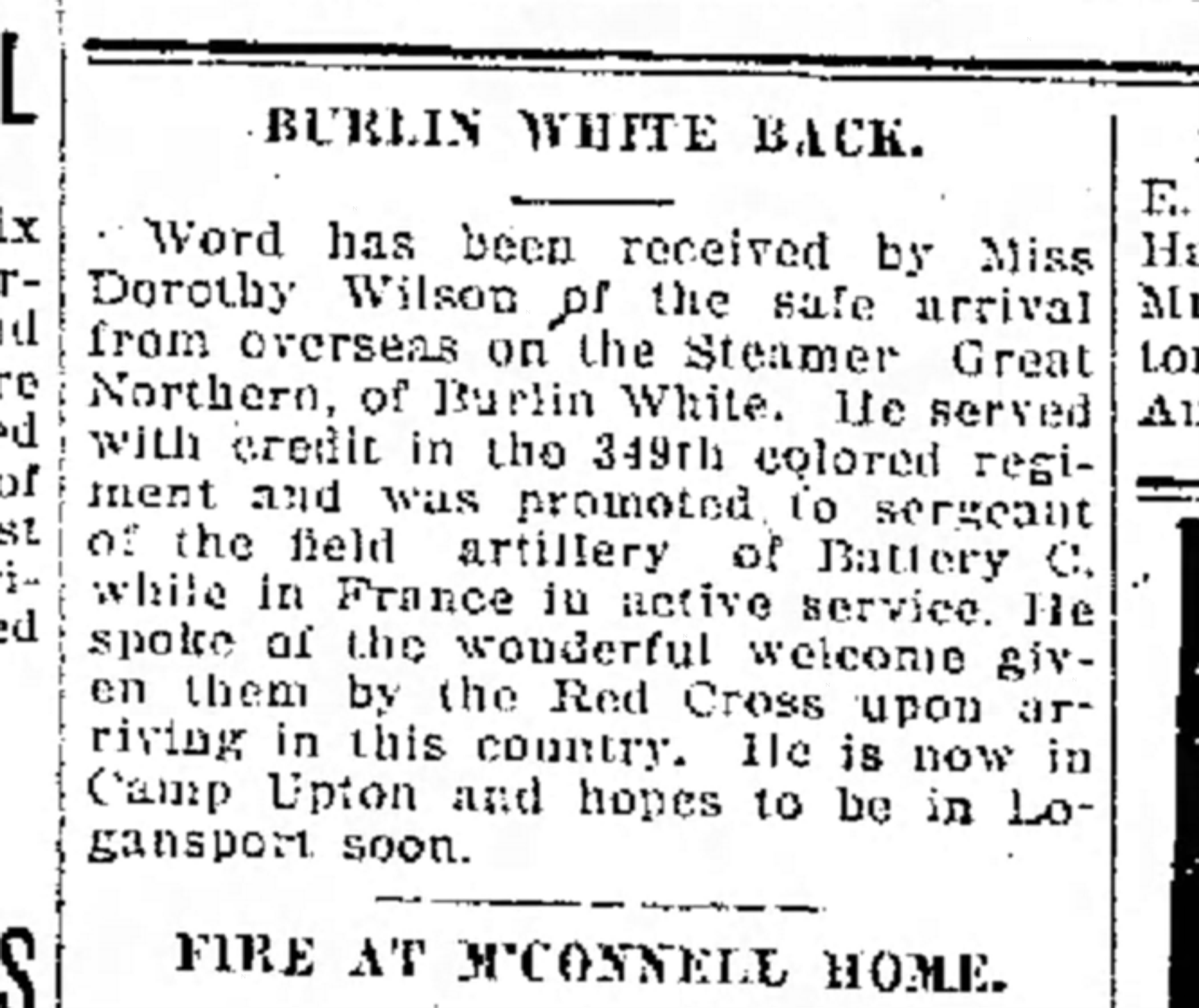 His baseball career was interrupted briefly for service in the Army in 1918, first at Camp Dix in Ohio, then on the Western front in France with the 349th Colored Regiment. He was eventually promoted to sergeant of an artillery company, according to this article from the Logansport Pharos-Tribune upon his discharge in early 1919
