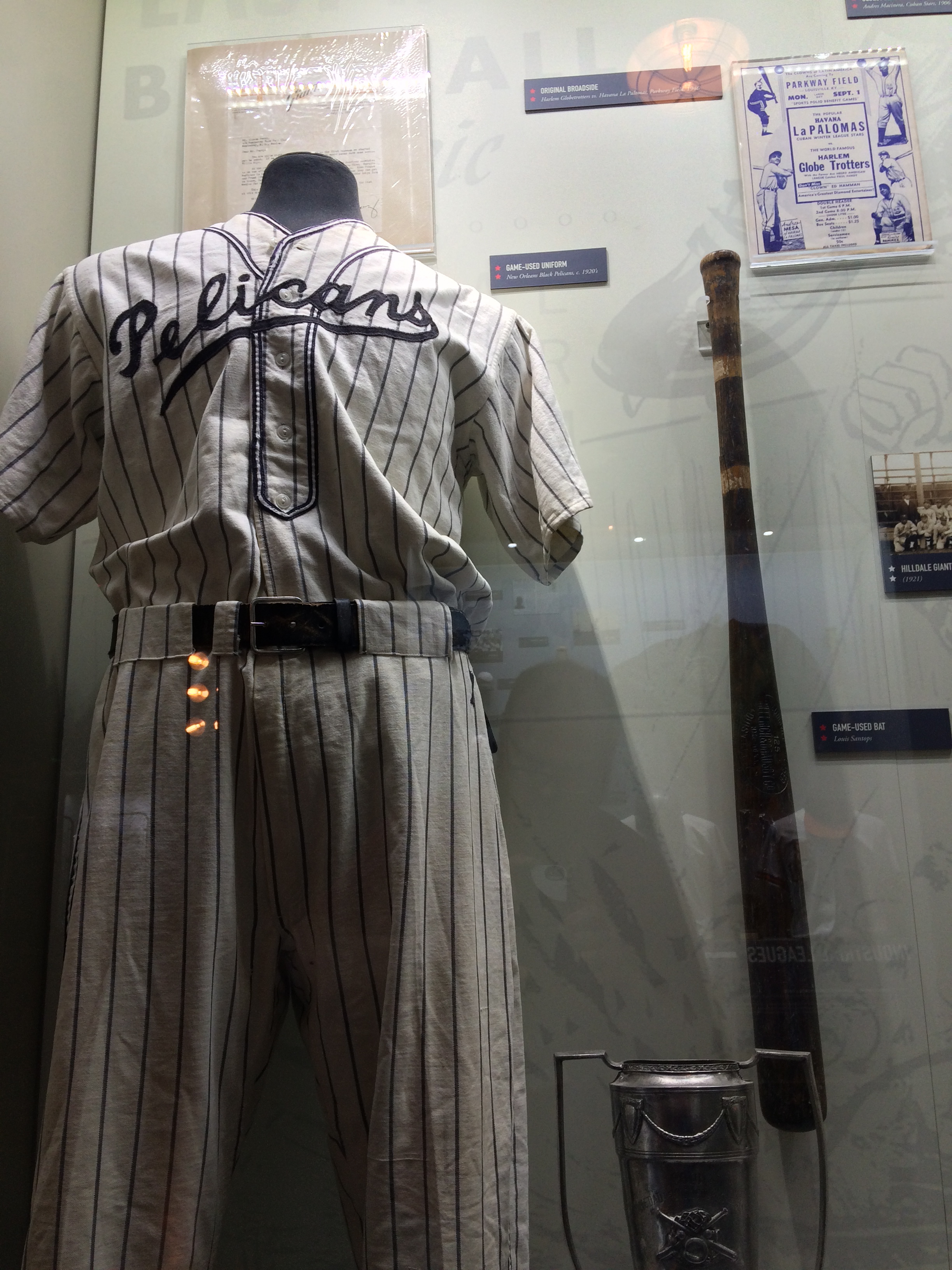 Finally … OK, remember when I said my two top items in the museum were a displays of balls and a Red Wings jersey? Yeah, umm, this one makes it a three-way finish — an authentic 1920s New Orleans Black Pelicans top. To make this display especially personal for me is the inclusion of several game-used items from Louisiana native Gentleman Dave Malarcher, one of my all-time favorite players and research subjects.