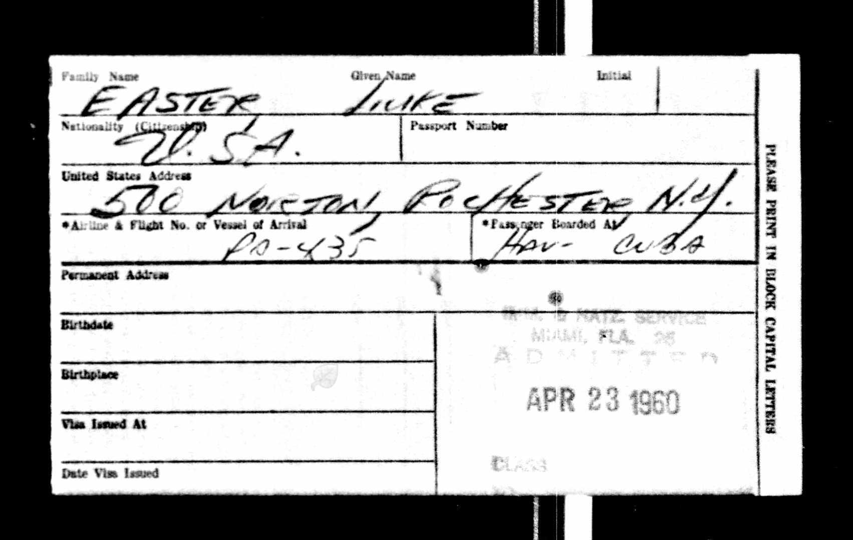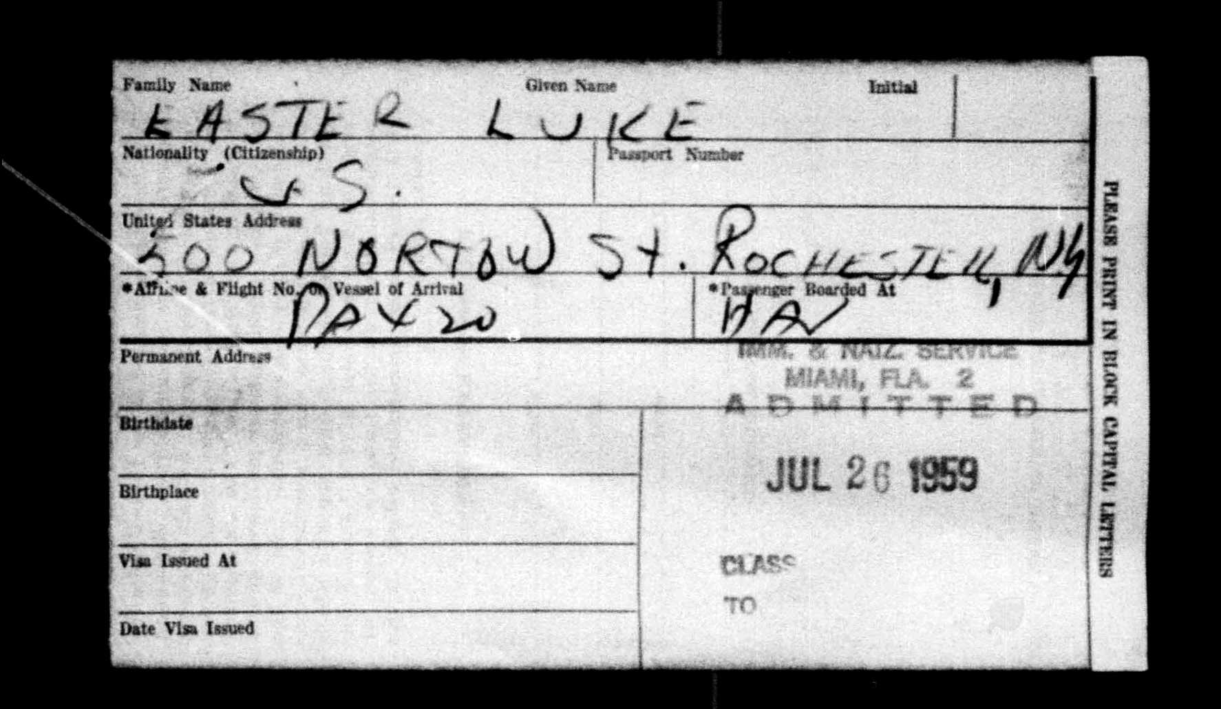 That comment reflects how much Rochester meant to Easter as well. There was, without a doubt, a high level of mutual affection. (Such a symbiotic bond existed between Easter and Buffalo. In fact, Luke even owned a sausage company there.) Easter often, in official documents, listed a Rochester address as his home, including the passenger registers below:
