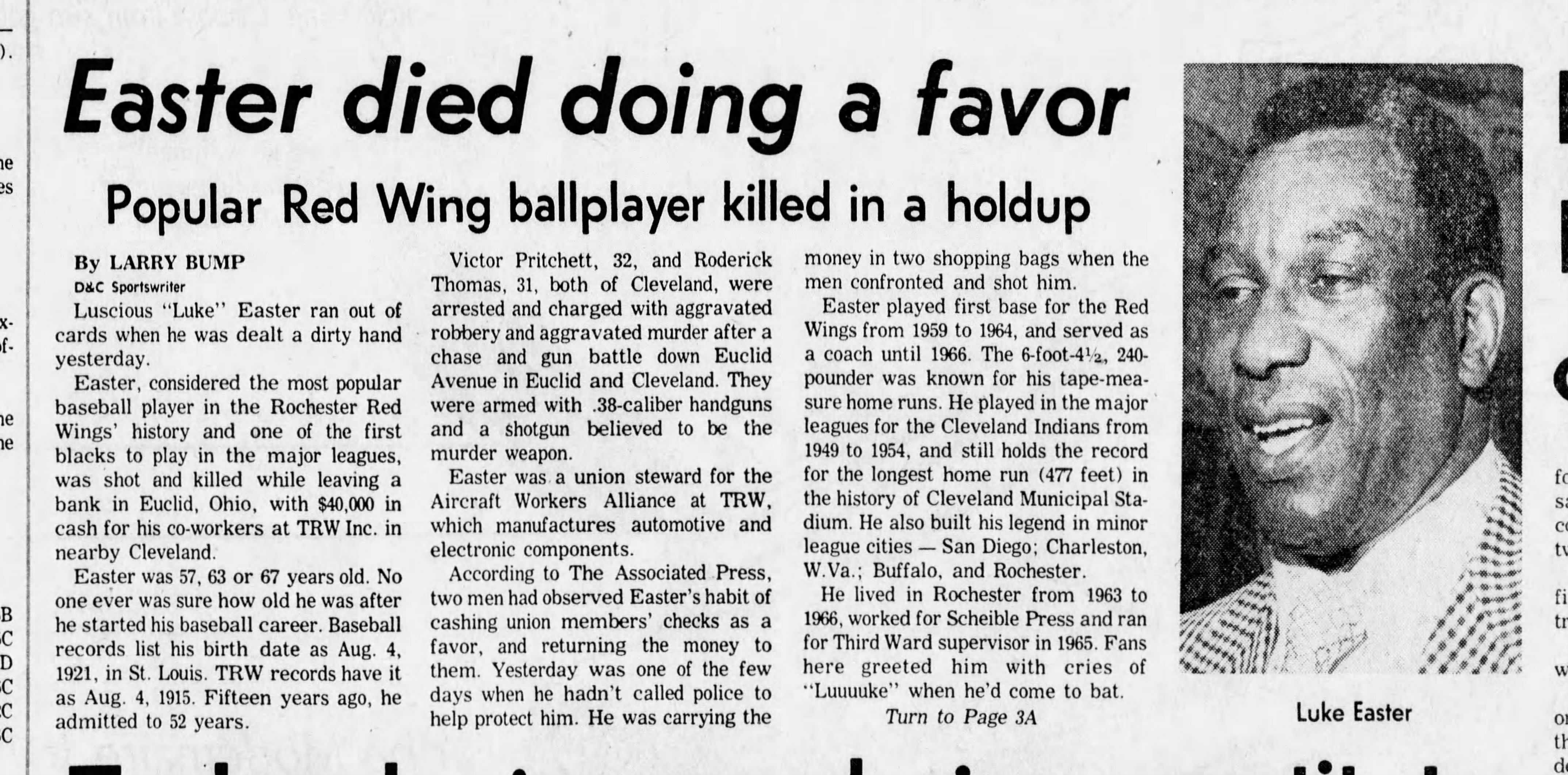 Luke Easter is indeed a Rochester legend. He’s the greatest Red Wing, and, I dare say, always will be.