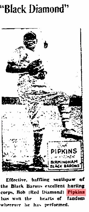 And actually, Pipkins has a connection to Winfield Welch — when the latter was hired to pilot the Black Barons, he brought Black Diamond along as part of his pitching rotation. Here’s a pic from the June 24, 1942, issue of the Atlanta Daily World. To be honest, I’d never seen a good picture of him before, so this was a pretty cool find for me: