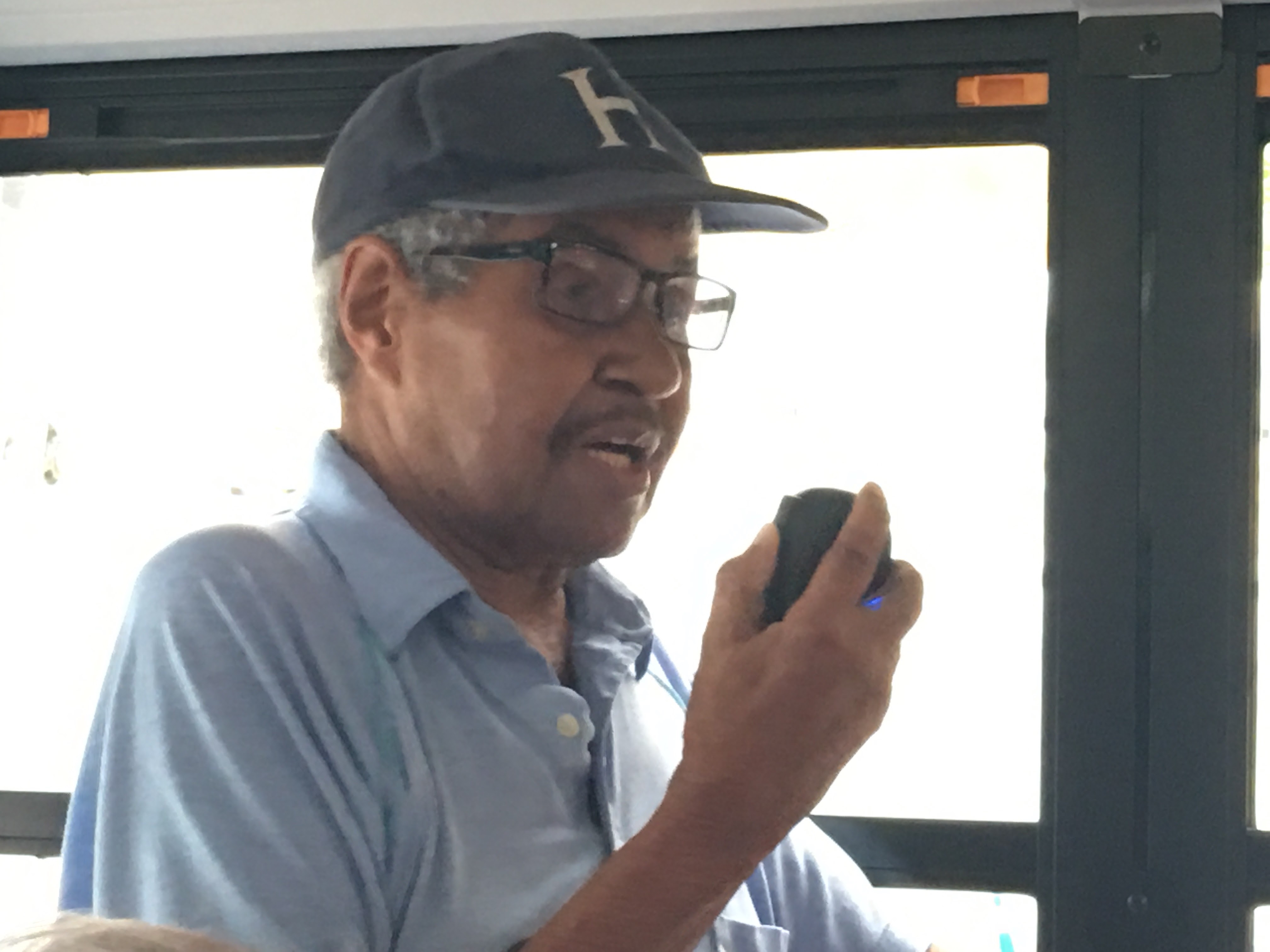 Dozens of us piled onto a specially rented school bus for the trek, which included key stops on Adams Street/Hygienic Hill in the borough of Steelton, where Rap Dixon and many other black residents lived, went to school and worshiped; and historic Midland Cemetery to pay respects at Rap’s grave, which a couple years ago received a stunning tombstone after going unmarked for decades.
