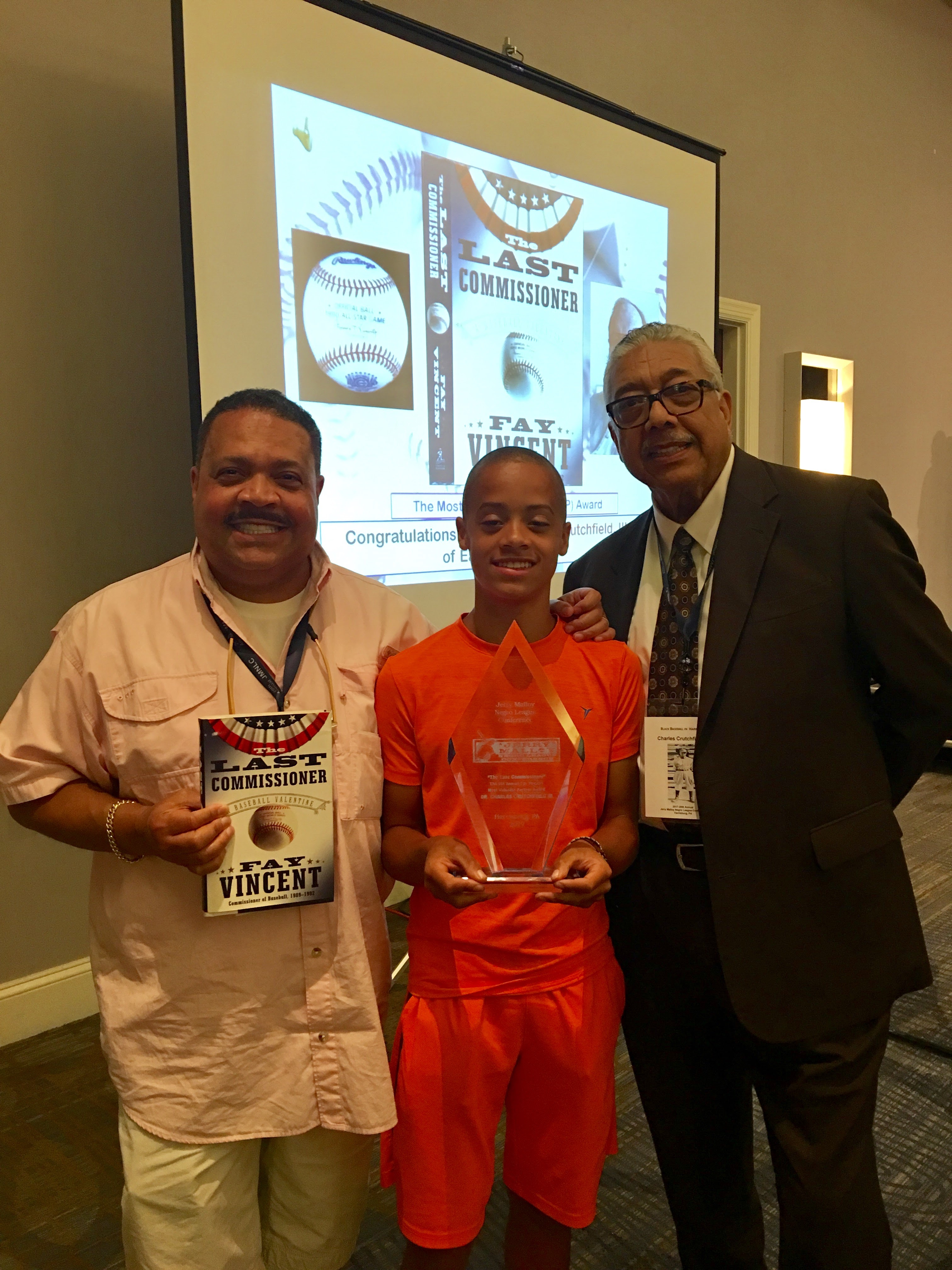 Three generations of Charles Crutchfields (Junior, III and IV) after Charles III received the prestigious Fay Vincent MVP Award. The Crutchfields are relatives of the great outfielder Jimmie Crutchfield.