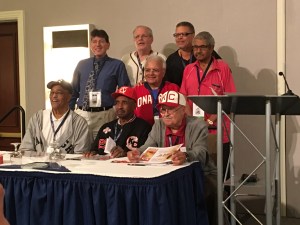 Rodney (second from right) with former Negro Leaguers Sam Allen, Jim Robinson and Ken Free, along with other descendants of Negro League figures. The members of the group were recognized, thanked and given certificates for their gracious attendance.