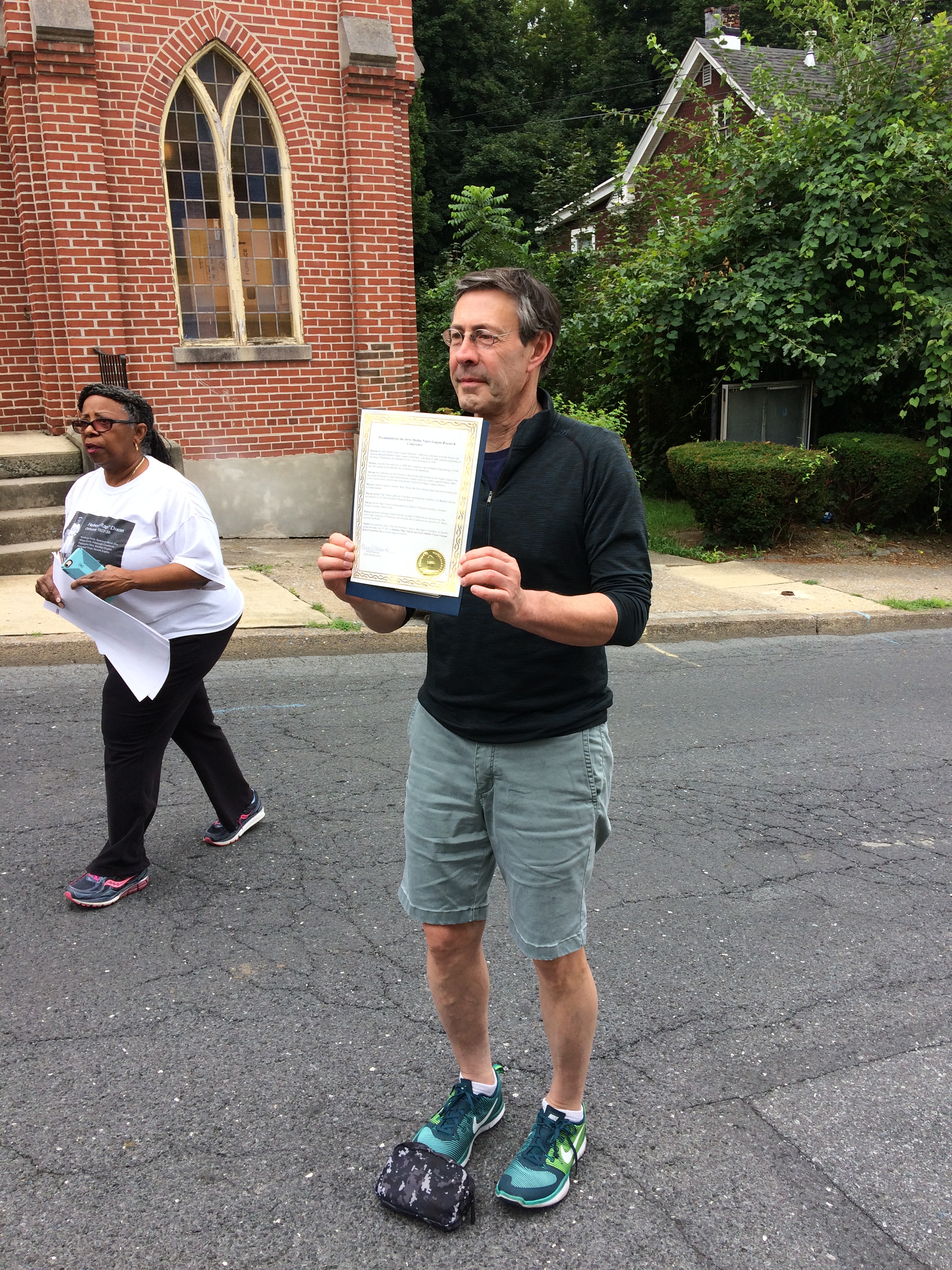 Steelton Mayor Maria Romano Marcinko reads the borough’s proclamation honoring Rap and declaring Rap Dixon Day. Here is a borough press release on the event.