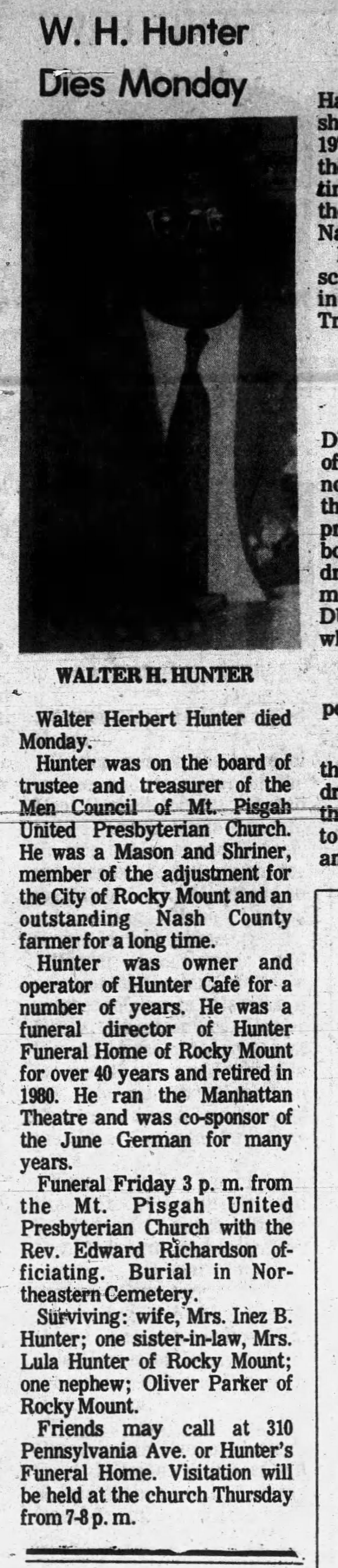 (On a neat little aside, both Buck and Herbert Hunter served on the 1972 campaign committee for Rocky Mount City Council candidate George W. Dudley; both men help positions on Dudley’s finance committee. Herbert Hunter passed away in 1982.)