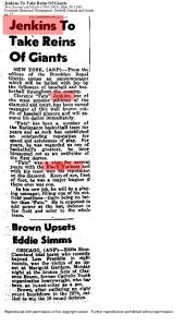 And for most of the places Jenkins and the Giants went that summer, his name, and their name, preceded them. Stated the Munster, Ind., Times newspaper in late June of that year: