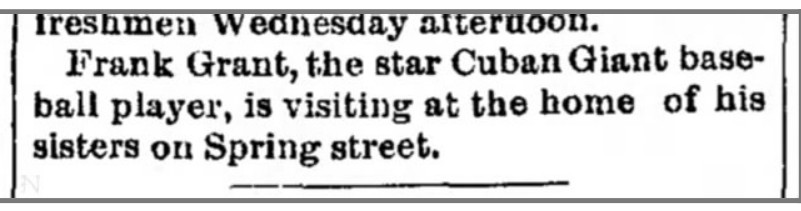 In 1895, the Cubans travels brought them frequently to Western Mass and the Berkshires for a few reasons, not the least of which was that Giants star and eventual Baseball Hall of Famer Frank Grant was from Pittsfield, where he began his baseball career. Grant also frequently returned home to visit family in Pittsfield.