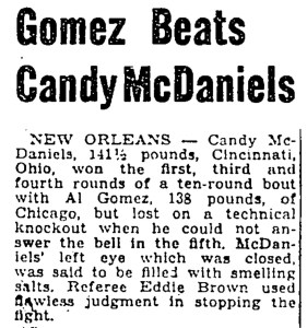 After Brown Sr. retired from fighting himself, he worked feverishly for more than 30 years as a bout referee and judge, often stationing himself ringside for many of the top regional fights held in New Orleans and winning a reputation as a fair, decisive and insightful official. In 1946, for example, the famed Pittsburgh Courier newspaper ran a short dispatch from New Orleans covering the Candy McDaniels–Al Gomez fight, in which the publication stated that Brown “used flawless judgment in stopping the fight” in declaring a technical knockout victory for Gomez.