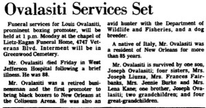 - Lou Ovalasiti promoted many of Eddie Brown’s fights and served as a boxing kingpin and promoter supreme for decades in the mid-20th century in the Crescent City. Ovalasiti hyped and touted many black boxers and bouts over the years, including Eddie Kid Brown and his opponents. In fact, according to an obituary written by the Times-Picayune upon Ovalasiti’s death in October 1979, the Italian immigrant and retired businessman was “the first promoter to bring black boxers to New Orleans at the Coliseum Arena.”