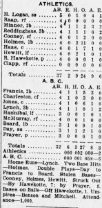 Box score from the Richmond Giants’ first game, with Oscar Charleston listed.