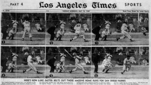 Given the severity of the injury, I’ll never understand how he then did what he did. By the end of May, 57 games into the season, Easter was hitting .400 with 18 home runs and 67 RBIs. Twenty-thousand people were routinely packing into Pacific Coast League stadiums to watch Easter play. With the intensity the ball was flying off his bat, he put every fielder on notice. “I wish they’d get him out of here before he kills every infielder in the Coast League,” Hollywood Stars manager Fred Haney lamented.