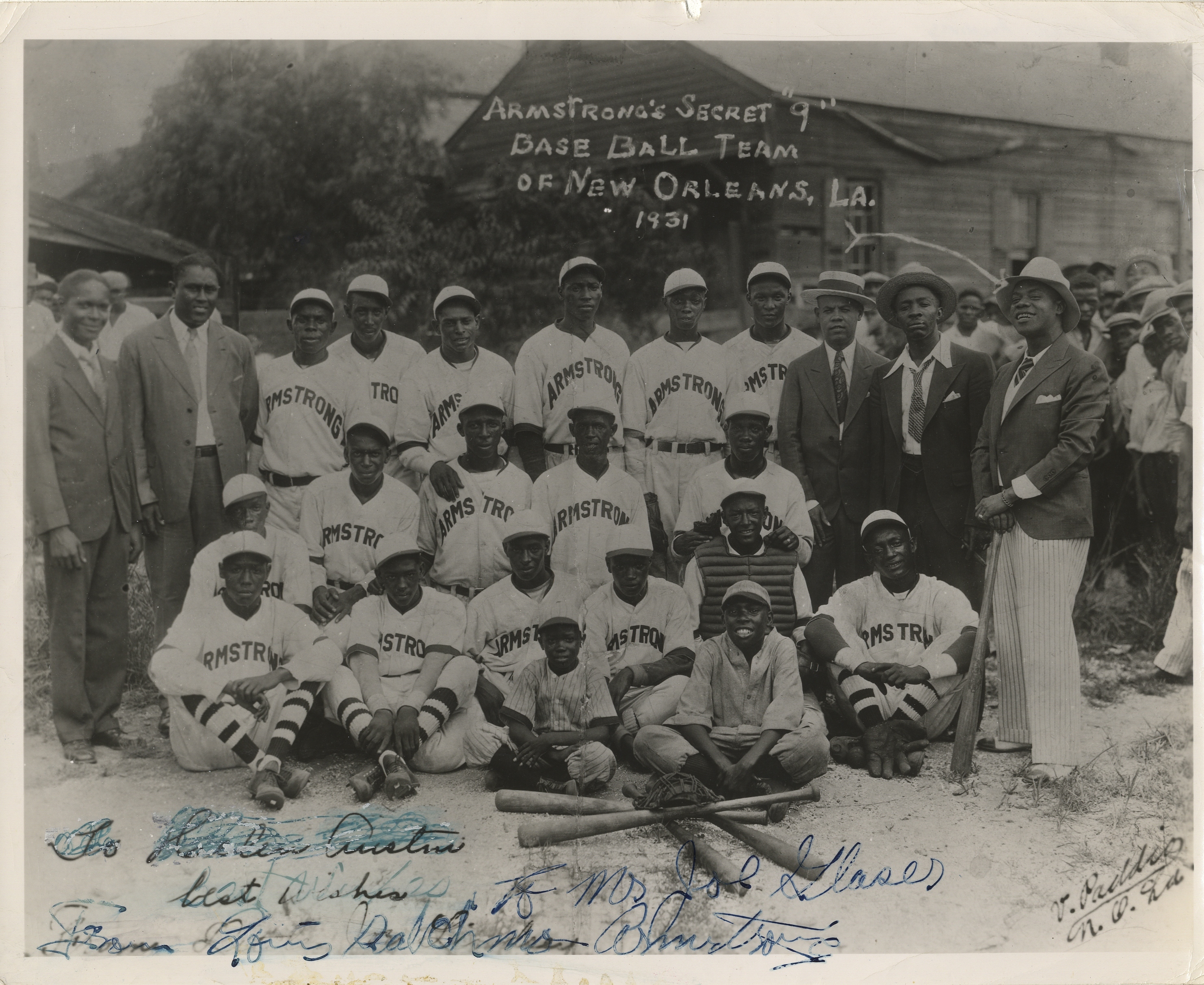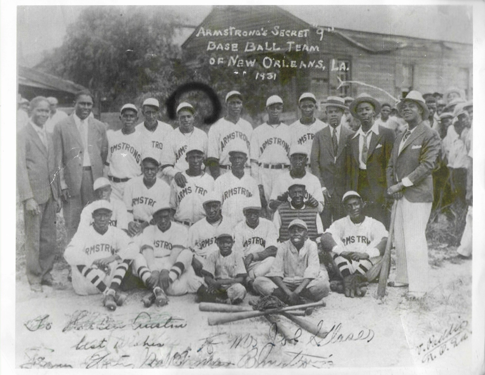 Here we return, one last time, to the Secret 9, the great Louis Armstrong’s semi-pro baseball team in early-1930s New Orleans. More specifically, we dive into the iconic photo of the club with their famous benefactor taken during Satchmo’s triumphant 1931 homecoming to the Crescent City.