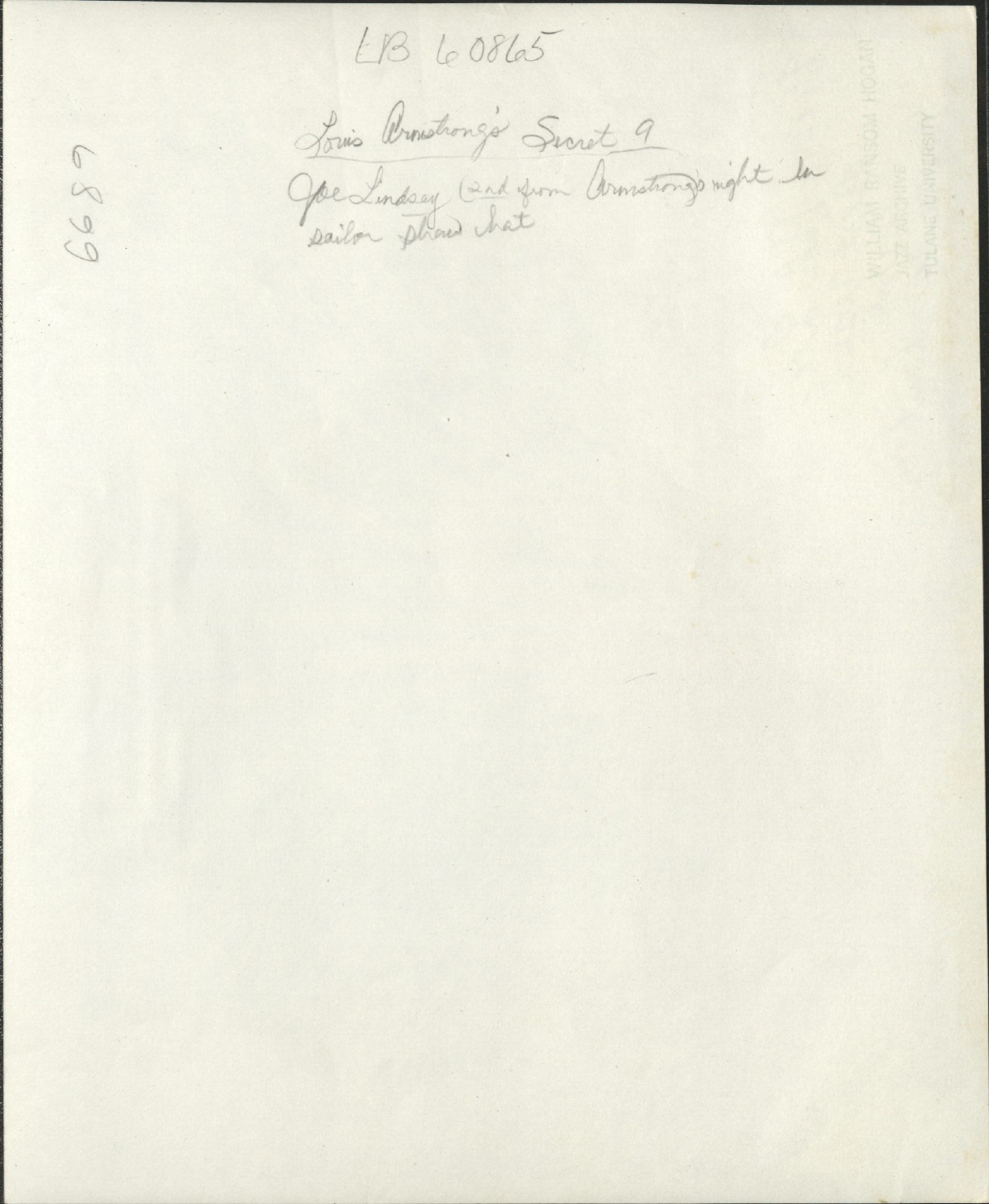 I’m not really sure who “Lee” is in Lindsey’s signature. Perhaps Lee Blair, a guitarist and banjoist who played with Louis and his orchestra in the mid- to late-1930s? Or Lee Collins, a trumpeter from New Orleans who, like Armstrong and Armstrong’s mentor King Oliver, moved to Chicago in the 1920s and played with a slew of early jazz greats?