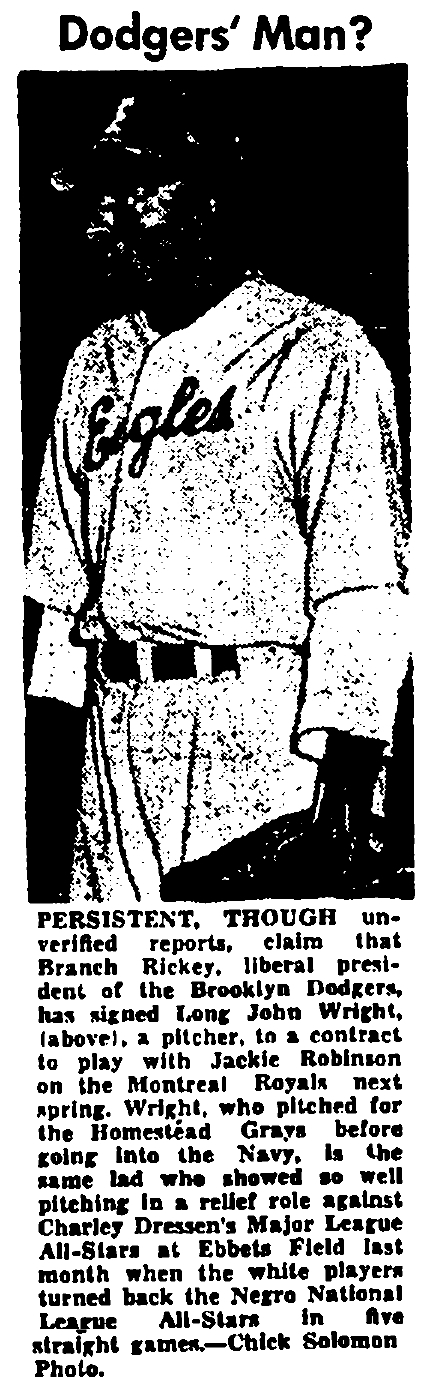 “Upon being interviewed, Wright said: ‘I am very happy to be the second Negro that will have an opportunity to play major league ball. I will do my utmost to come through and I wish to thank all of my friends who have been pulling for me.’