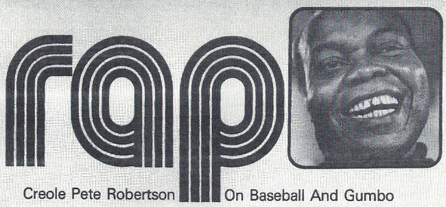 We now go to Pete Robertson, baseball philosopher and kingpin, with a few quirky and colorful comments from the man himself. Throughout his life, no matter what other challenges he tackled and ventures he launched (entrepreneurial, charitable or otherwise), Creole Pete remained intimately connected to the sport he played, managed and loved. He never ventured too far away from his first love. To wit …