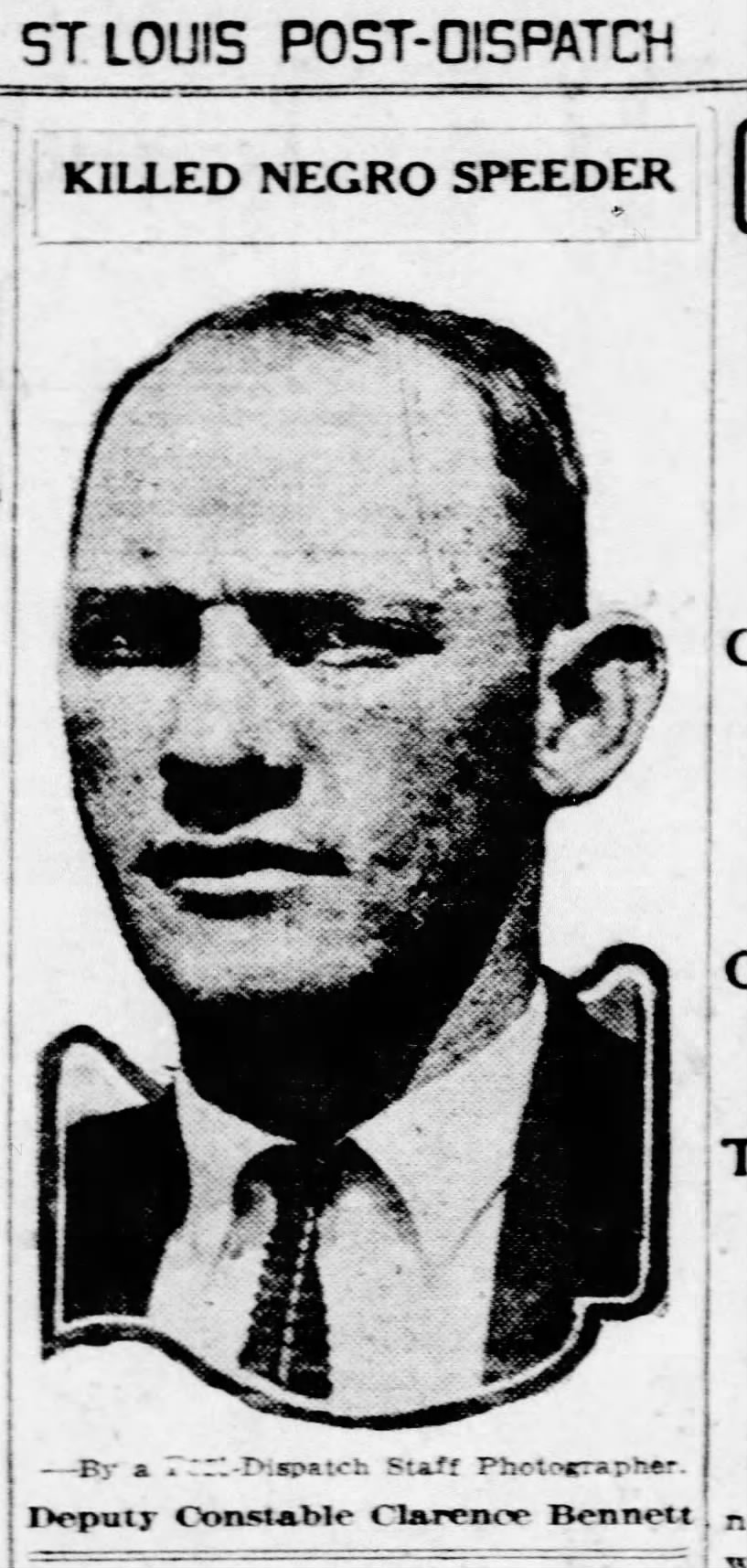 The first is the identity of the second St. Louis deputy constable who joined the primary perpetrator, Clarence Bennett, whose role in the murder was well reported and known at the time, as was his galling exoneration by an all-white grand jury that took just three minutes to officially slander Fred Goree’s name and paint Bennett as a hero acting in self-defense.