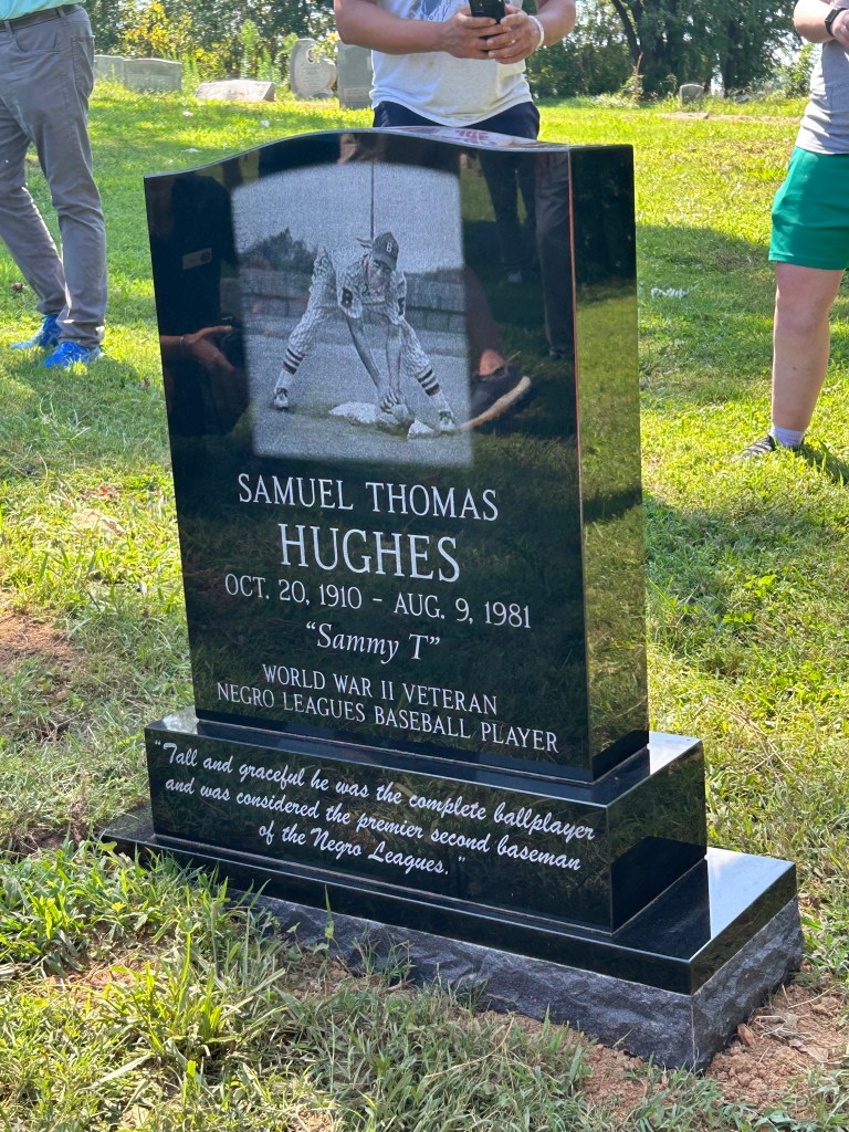 About 15 or so people gathered at Louisville Cemetery on Sunday, Aug. 10, to dedicate a new tombstone on the grave of Sammy T. Hughes, one of the best, most well rounded second basemen in Black baseball in the 1930s and ’40s.