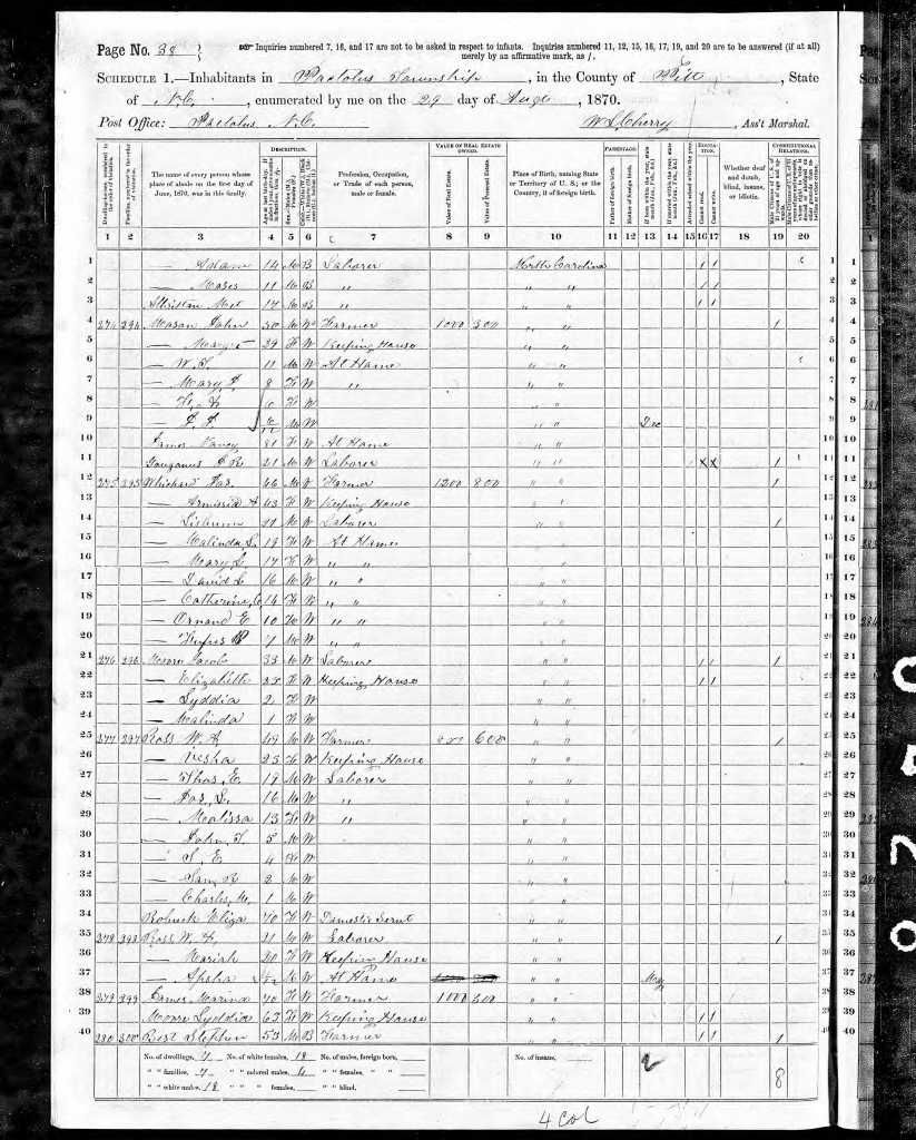 Pre-Civil War Census slave schedules show several slaveholders with the last name of Henry in Yazoo County; the white Henrys might have belonged to the same family, with a man named Dixon (or Dickson) Henry as a patriarch. It’s likely that Anderson Henry, or at least his parents, were owned by one of the slaveholding white Henrys.